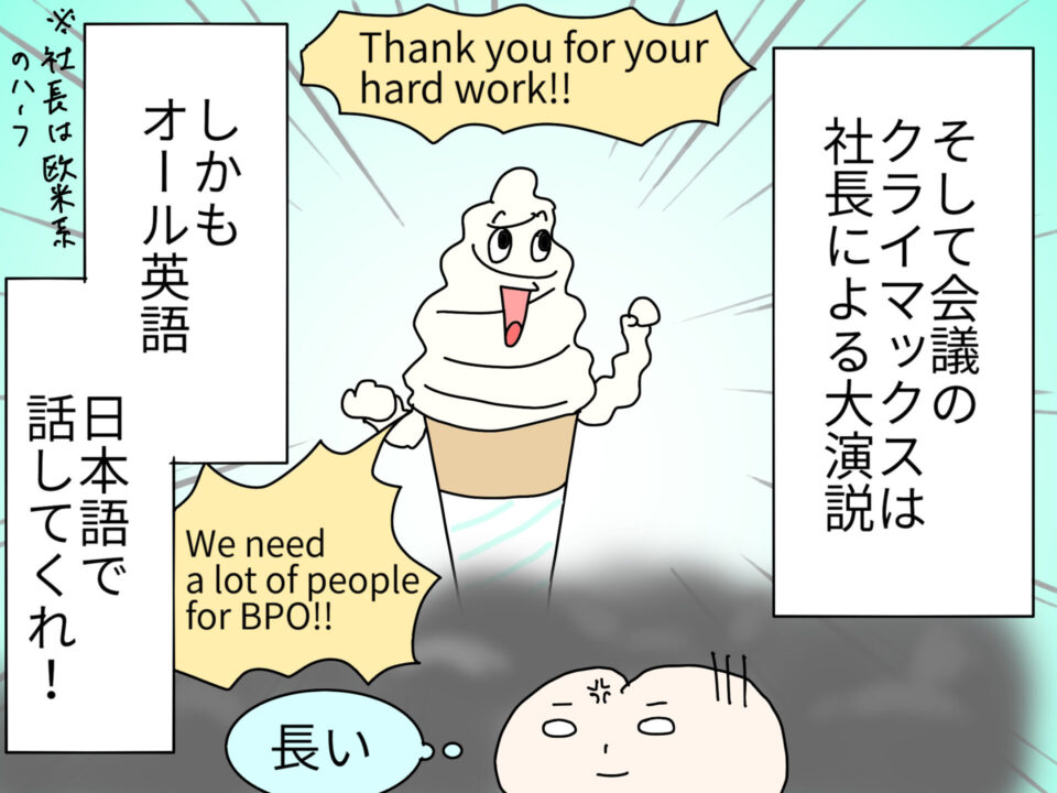 社長は英語圏の人とのハーフとのことで、名前は日本の男性名(漢字)が入っているのだが、一切日本語を話さない。話そうとしない。
